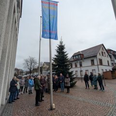 Um auf diese Entwicklungen aufmerksam zu machen, fand auch in diesem Jahr wieder eine gemeinsame Mahnwache vor dem Fürther Rathaus statt. Dort wurde die weithin sichtbare Fahne mit der Botschaft „NEIN zu Gewalt an Frauen“ gehisst – ein Zeichen für Solidarität, Achtsamkeit und Unterstützung.