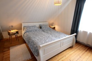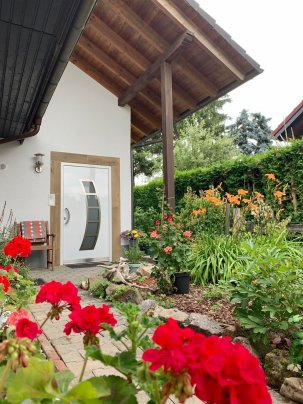 -siehe Homepage- | Ferienwohnung für 2 bis 6 Personen, über 100 m²– ruhig am Ortsrand gelegen Mountainbike Strecke direkt hinter dem Haus Einrichtung: 1 Schlafzimmer mit Doppelbett inkl. 1 Babybett, 2 Schlafzimmer mit 2 Einzelbetten. Bad mit Dusche/WC und ein Gäste- WC extra. Küche mit E-Herd, Kaffeemaschine, Kühl-Gefrierschrank, Mikrowelle, voll ausgestattet, Geschirr, Töpfe, Pfannen, Ess-Wohnzimmer mit Esstisch für 6 Personen, Kinderstuhl, Couchgarnitur, Fernseher, Sat-TV, WLAN. Bettwäsche, Handtücher werden gestellt. Handtücher und Decken nur für den Gebrauch im Haus. Nichtraucher-Wohnung, keine Haustiere. Kleine Gäste-Terrasse mit Tisch und 6 Stühlen, Sitzbank vor der Eingangstür. 1 Carport-Parkplatz und 1 Straßen-Parkplatz. |
